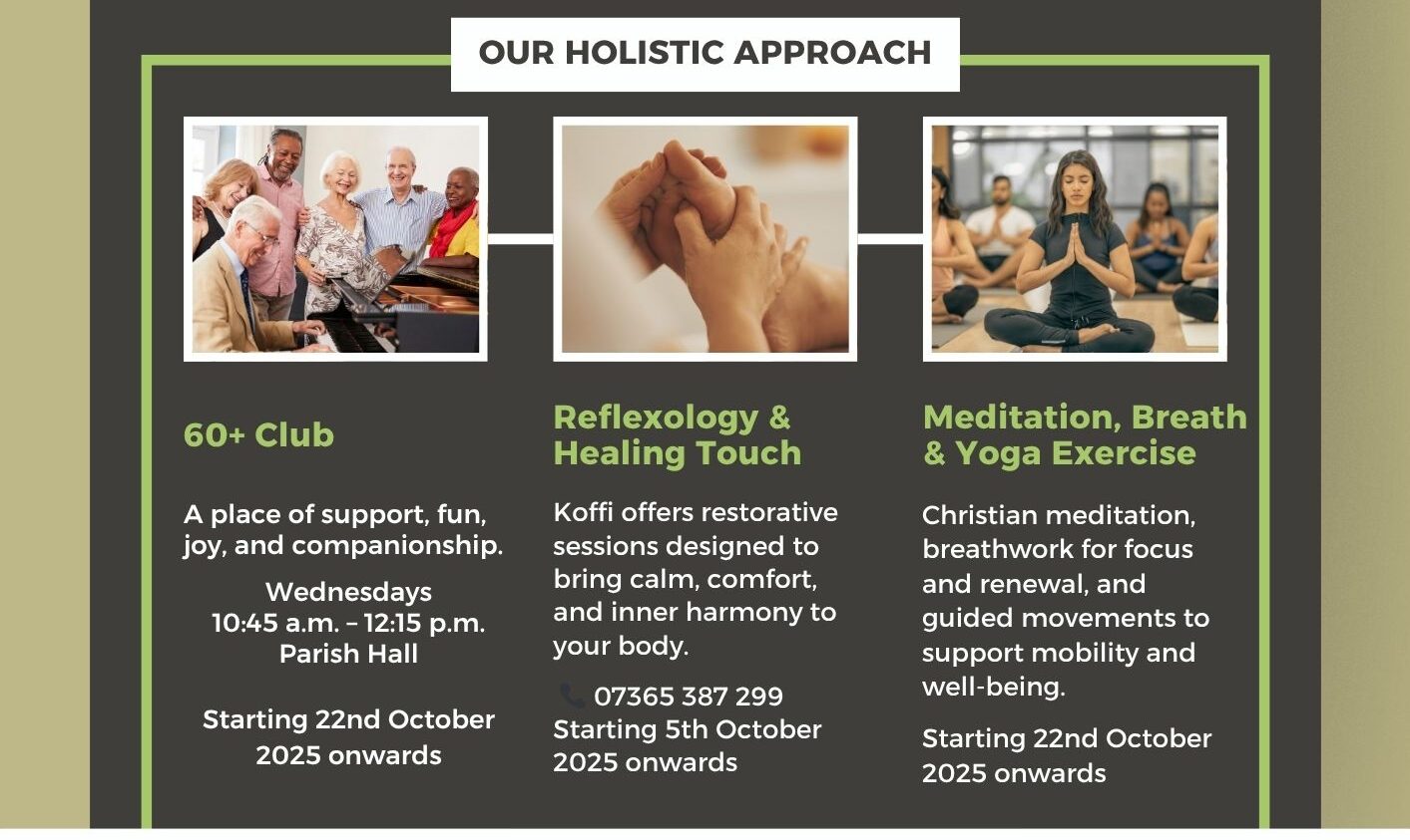 A Space for Harmony of Body, Mind, and Spirit At St Ann’s Catholic Church, Kingston Hill, we believe that faith and well-being go hand in hand.Our beautiful campus offers a natural space where parishioners and neighbours alike can pause, breathe, and rediscover balance — body, mind,