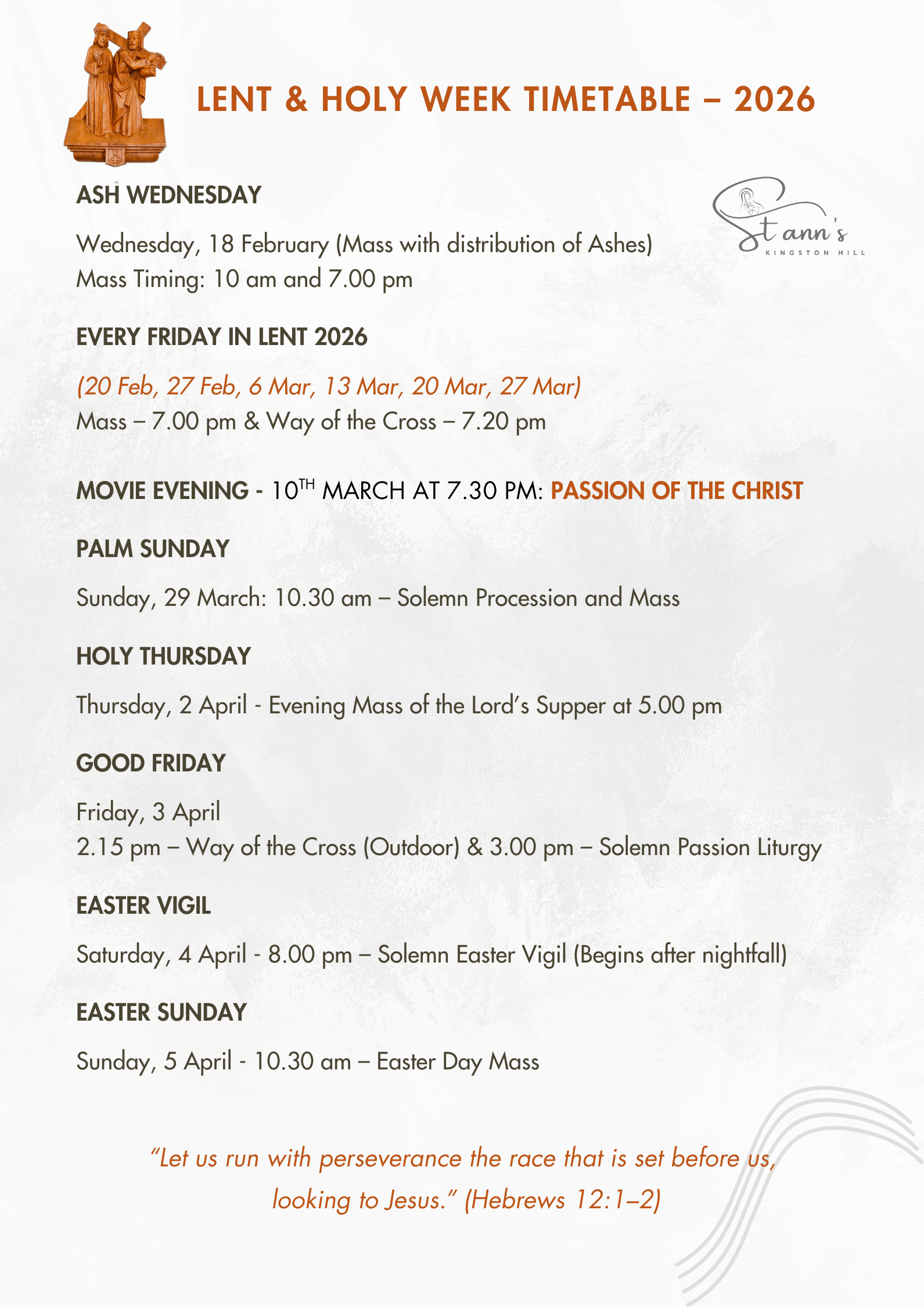 Lent & Holy Week Timetable – 2026