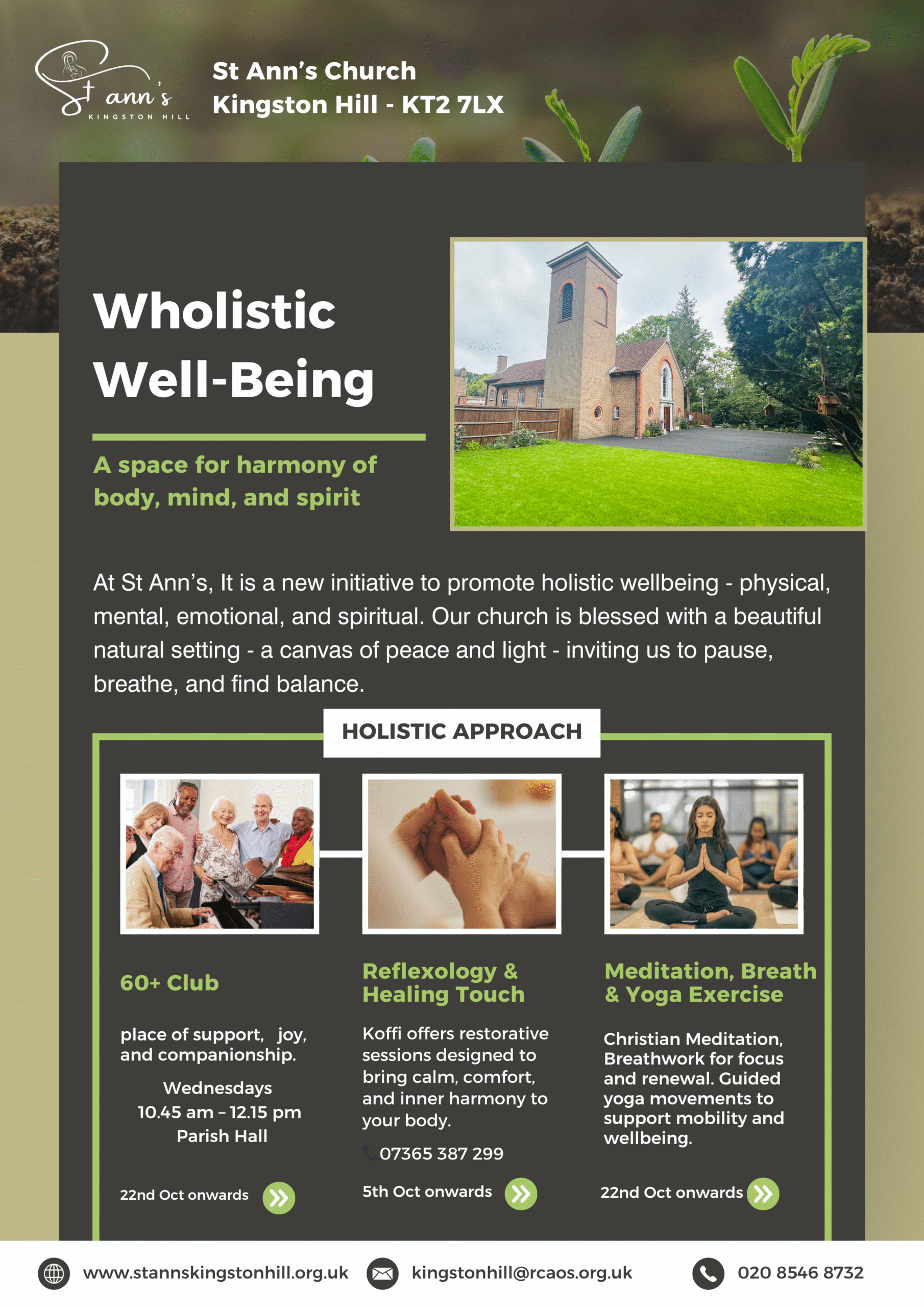 At St Ann’s Catholic Church, Kingston Hill, we believe that faith and well-being go hand in hand.